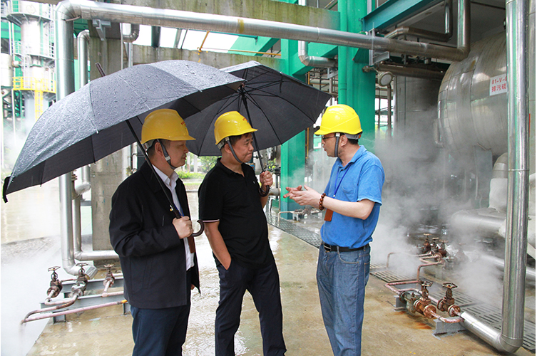 6月20日下午,浙江省生态环境厅排污权交易中心主任蔡文祥调研华亿在线体育(中国)官方网站生态工业园,股份公司总经理徐万福陪同。
