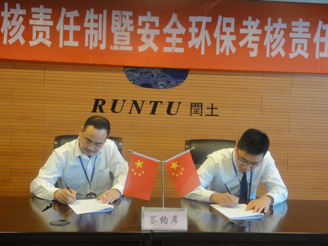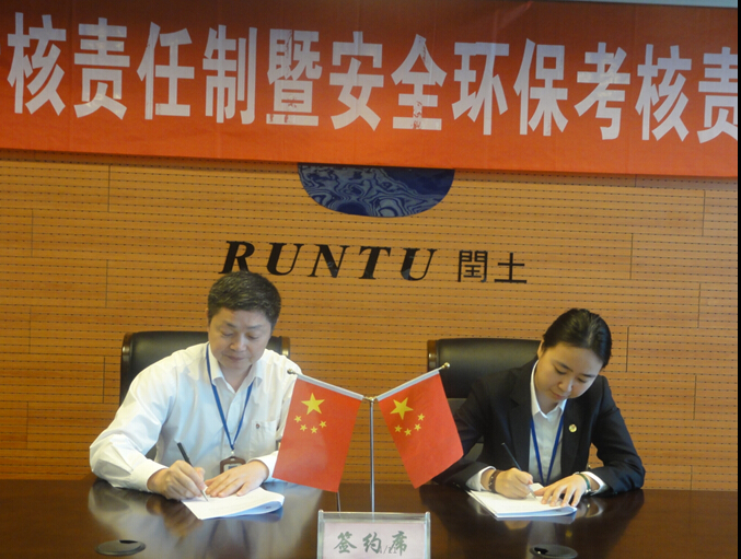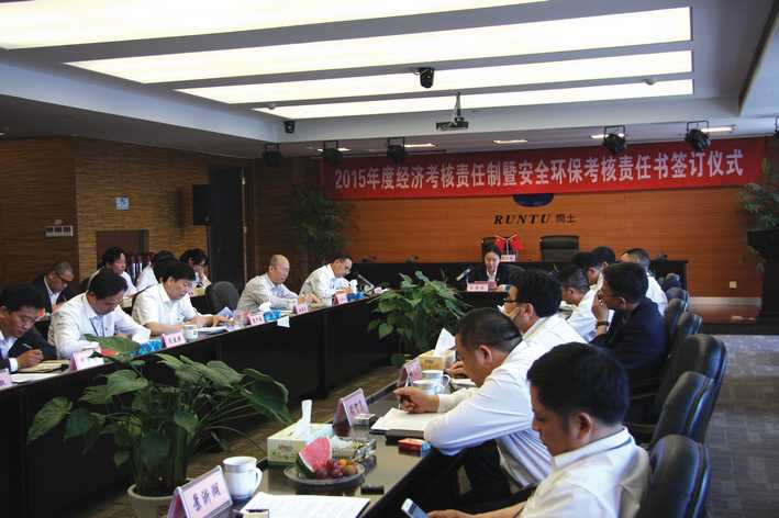 5月5日上午,2015年度经济考核责任制暨安全环保考核责任书签订仪式在华亿在线体育(中国)官方网站大厦举行,会议由股份公司总经理徐万福主持。董事长阮静波、副董事长阮加春、副总经理阮光栋、各子公司董事长、总经理等出席签订仪式。