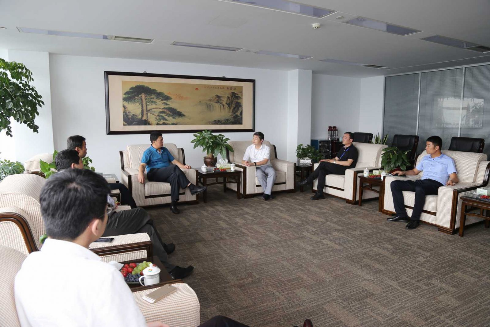 7月3日,山东省临沂市蒙阴县委副书记、县长隽新阳,蒙阴县招商局副局长吕荡,蒙阴县孟良崮工业园管理委员会主任卞永建一行到访华亿在线体育(中国)官方网站,股份公司总经理徐万福、董事长助理徐军接待。双方互通发展情况,并就未来合作进行了坦诚交流。